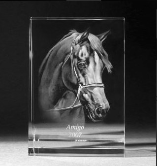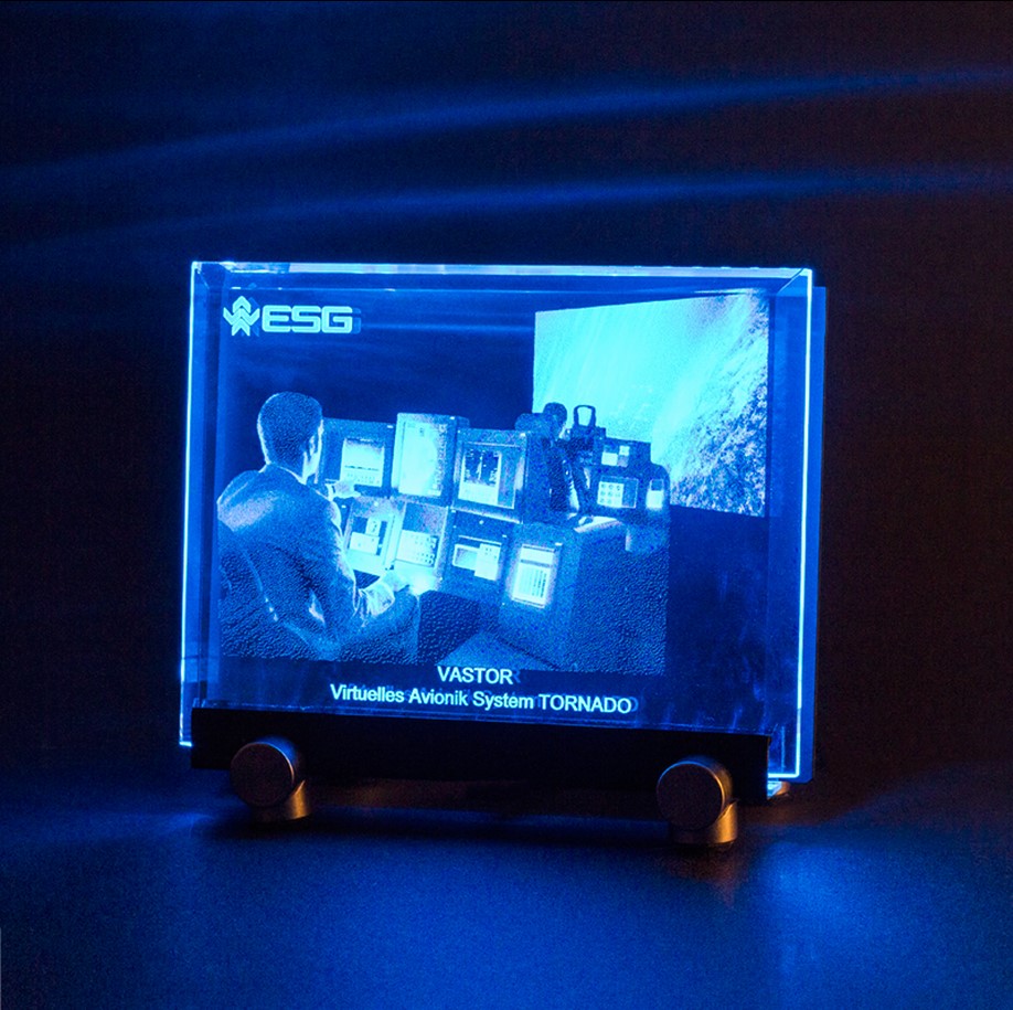 On request we can engrave your logo or individual desired text (for example name, dedication or congratulations) to your 2D photo in glass.