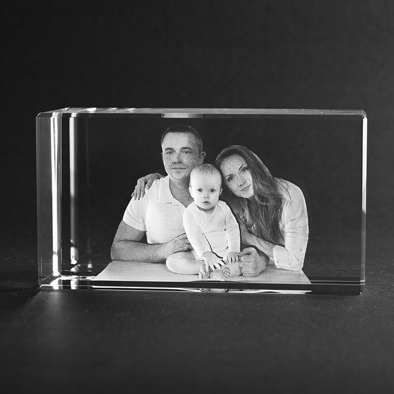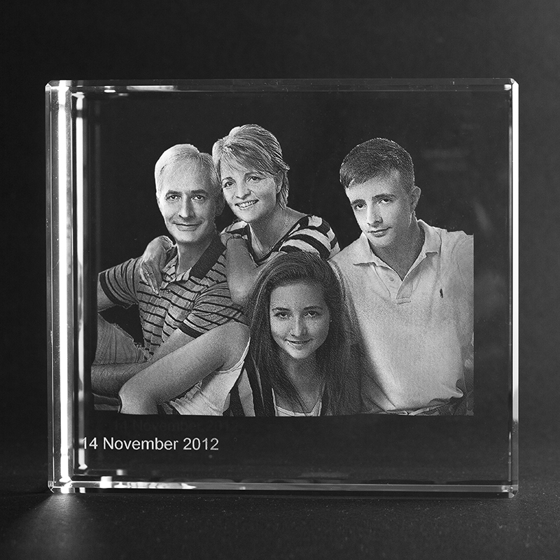 Send us your photo, digitally or via post, we will create a unique three-dimensional laser image inside a picture cube.